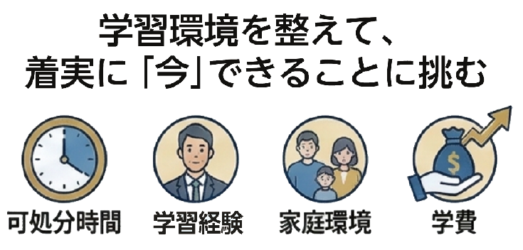 そのため勉強を進めると、仕事や学校の勉強との両立で計画通りに進まないことも。