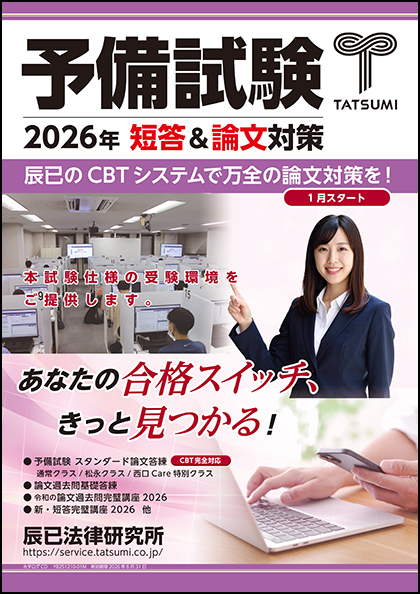 資料請求 予備試験 司法試験 法科大学院 司法書士 社労士 行政書士 宅建 パンフレット▼サブスク対応!NEW基礎講座 閲覧する 選択する パンフレット▼司法試験 2026年対策講座 閲覧する 選択する チラシ▼辰已のCBTはどうなる?CBTご案内 閲覧する 選択する パンフレット▼法律基礎講座/基礎集中講義のご案内 閲覧する 選択する パンフレット▼司法試験 2024年合格体験記 閲覧する 選択する パンフレット▼司法試験 合格の形 選択科目2年分(2021&2022年)合格体験記 閲覧する 選択する パンフレット▼サブスク対応!NEW基礎講座 閲覧する 選択する パンフレット▼法律基礎講座/基礎集中講義のご案内 閲覧する 選択する パンフレット▼法科大学院入試 2025年受験/2026年入学目標開講講座 閲覧する 選択する パンフレット▼予備試験 2026年1月スタート 閲覧する 選択する パンフレット▼サブスク対応!NEW基礎講座 閲覧する 選択する チラシ▼辰已のCBTはどうなる?CBTご案内 閲覧する 選択する パンフレット▼予備試験2026年対策 短答&論文対策講座 閲覧する 選択する パンフレット▼法律基礎講座/基礎集中講義のご案内 閲覧する 選択する パンフレット▼2027年受験対策 司法書士 リアリスティック一発合格 松本基礎講座 閲覧する 選択する パンフレット▼令和7年度 司法書士試験 合格体験記 閲覧する 選択する パンフレット▼司法書士 リアリスティック一発合格松本基礎講座 速習&ロングスタディコース 閲覧する 選択する パンフレット▼司法書士合格講座 パーフェクトユニット 速習コース&じっくり合格コース 閲覧する 選択する パンフレット▼2026年合格目標 司法書士 秋期開講講座 閲覧する 選択する チラシ▼2026対策版 司法書士肢別アプリ 閲覧する 選択する パンフレット▼司法書士 リアリスティック一発合格松本基礎講座 8ケ月合格&ロングスタディコース 閲覧する 選択する パンフレット▼2026年合格目標 司法書士 夏期開講講座 閲覧する 選択する パンフレット▼2026年受験対策 司法書士 リアリスティック一発合格 松本基礎講座 筆記試験後スタート 閲覧する 選択する パンフレット▼2026年合格目標 司法書士合格講座 パーフェクトユニット 筆記試験後スタート 閲覧する 選択する パンフレット▼司法書士試験 スマートリアリ1 民法 抜粋版 閲覧する 選択する パンフレット▼田端のパーフェクトユニット 記述式 必修問題集60 抜粋版 閲覧する 選択する パンフレット▼2026・2027年合格目標 司法書士合格講座 パーフェクトユニット 閲覧する 選択する パンフレット▼令和6年度 司法書士試験 合格体験記 閲覧する 選択する パンフレット▼2026年受験対策 司法書士 リアリスティック一発合格 松本基礎講座 閲覧する 選択する パンフレット▼司法書士試験 リアリスティック 記述式問題集 応用編 抜粋版 閲覧する 選択する パンフレット▼令和5年度 司法書士試験 合格体験記 閲覧する 選択する パンフレット▼司法書士試験 リアリスティック 記述式問題集 基本編 抜粋版 閲覧する 選択する パンフレット▼令和4年度 司法書士試験 合格体験記 合格の形 閲覧する 選択する パンフレット▼令和3年度 司法書士試験 合格体験記 閲覧する 選択する パンフレット▼司法書士試験 リアリスティック刑法 抜粋版 閲覧する 選択する パンフレット▼令和2年度 司法書士試験 合格体験記 閲覧する 選択する パンフレット▼社会保険労務士 佐藤塾2026年試験対策 閲覧する 選択する パンフレット▼行政書士 2026年対策 総合講座 閲覧する 選択する パンフレット▼行政書士 開業塾&匠シリーズ 10期生 閲覧する 選択する チラシ▼2025年版 リーダーズ倶楽部 閲覧する 選択する パンフレット▼宅建受験をされた方へ 行政書士試験対策講座 閲覧する 選択する 選択した件の資料を請求する クリアする マイページからの簡単請求受講者特典マイページログイン