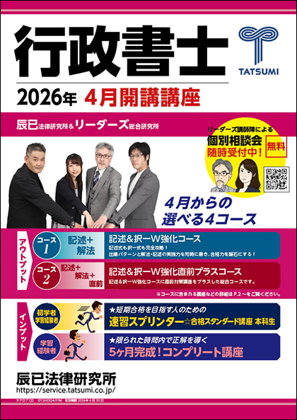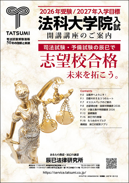 資料請求 予備試験 司法試験 法科大学院 司法書士 社労士 行政書士 宅建 パンフレット▼サブスク対応!基礎講座 閲覧する 選択する パンフレット▼2026年司法試験対策 第2クール&CBT全国公開模試 閲覧する 選択する パンフレット▼司法試験 2025年合格体験記 閲覧する 選択する チラシ▼辰已のCBTはどうなる?CBTご案内 閲覧する 選択する パンフレット▼司法試験 2024年合格体験記 閲覧する 選択する パンフレット▼司法試験 合格の形 選択科目2年分(2021&2022年)合格体験記 閲覧する 選択する パンフレット▼サブスク対応!基礎講座 閲覧する 選択する パンフレット▼法科大学院入試 2026年受験/2027年入学目標開講講座 閲覧する 選択する パンフレット▼サブスク対応!基礎講座 閲覧する 選択する パンフレット▼予備試験 2026年 本試験直前期対策 総合択一模試 閲覧する 選択する パンフレット▼予備試験 2026年1月スタート 閲覧する 選択する チラシ▼辰已のCBTはどうなる?CBTご案内 閲覧する 選択する パンフレット▼2026年合格目標 司法書士直前期開講講座 閲覧する 選択する チラシ▼2026対策版 司法書士肢別アプリ 閲覧する 選択する パンフレット▼2027・2028年合格目標 司法書士基礎講座 パーフェクトユニット 閲覧する 選択する パンフレット▼2027年受験対策 司法書士 リアリスティック一発合格 松本基礎講座 閲覧する 選択する パンフレット▼令和7年度 司法書士試験 合格体験記 閲覧する 選択する パンフレット▼司法書士試験 スマートリアリ1 民法 抜粋版 閲覧する 選択する パンフレット▼田端のパーフェクトユニット 記述式 必修問題集60 抜粋版 閲覧する 選択する パンフレット▼令和6年度 司法書士試験 合格体験記 閲覧する 選択する パンフレット▼司法書士試験 リアリスティック 記述式問題集 応用編 抜粋版 閲覧する 選択する パンフレット▼令和5年度 司法書士試験 合格体験記 閲覧する 選択する パンフレット▼司法書士試験 リアリスティック 記述式問題集 基本編 抜粋版 閲覧する 選択する パンフレット▼令和4年度 司法書士試験 合格体験記 合格の形 閲覧する 選択する パンフレット▼令和3年度 司法書士試験 合格体験記 閲覧する 選択する パンフレット▼司法書士試験 リアリスティック刑法 抜粋版 閲覧する 選択する パンフレット▼令和2年度 司法書士試験 合格体験記 閲覧する 選択する パンフレット▼2026社会保険労務士 佐藤塾 速修&社会保険パック 閲覧する 選択する パンフレット▼社会保険労務士 佐藤塾2026年試験対策 閲覧する 選択する パンフレット▼行政書士 2026年対策 4月開講講座 閲覧する 選択する パンフレット▼2025行政書士試験合格体験記 閲覧する 選択する パンフレット▼行政書士 2026年対策 春スタート 閲覧する 選択する パンフレット▼行政書士 開業塾&匠シリーズ 11期生 閲覧する 選択する チラシ▼2026年版 リーダーズ倶楽部 閲覧する 選択する チラシ▼2026年宅建登録講習 閲覧する 選択する 選択した件の資料を請求する クリアする マイページからの簡単請求受講者特典マイページログイン