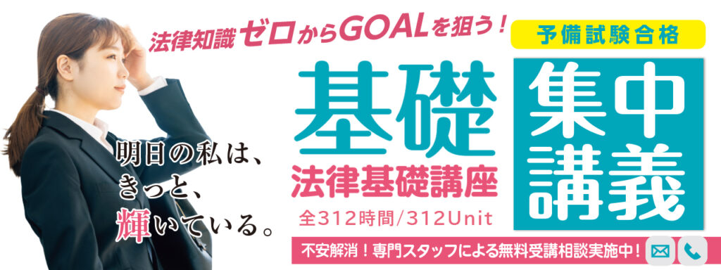 ⇒ ゼロからGOALを目指すインプット型法律基礎講座、基礎集中講義も好評開講中!⇐