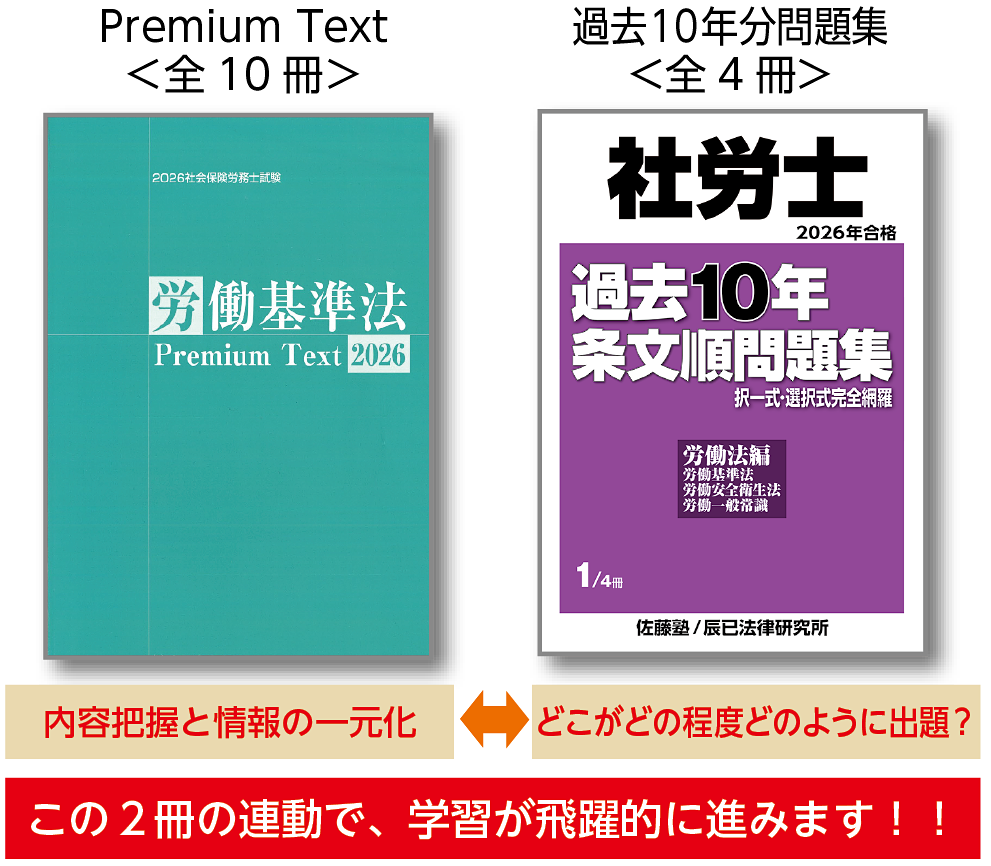 ・「速修パック」、「社保パック」の佐藤塾レクチャーの講義では、「プレミアムテキスト」と「過去問題集」を使用します。