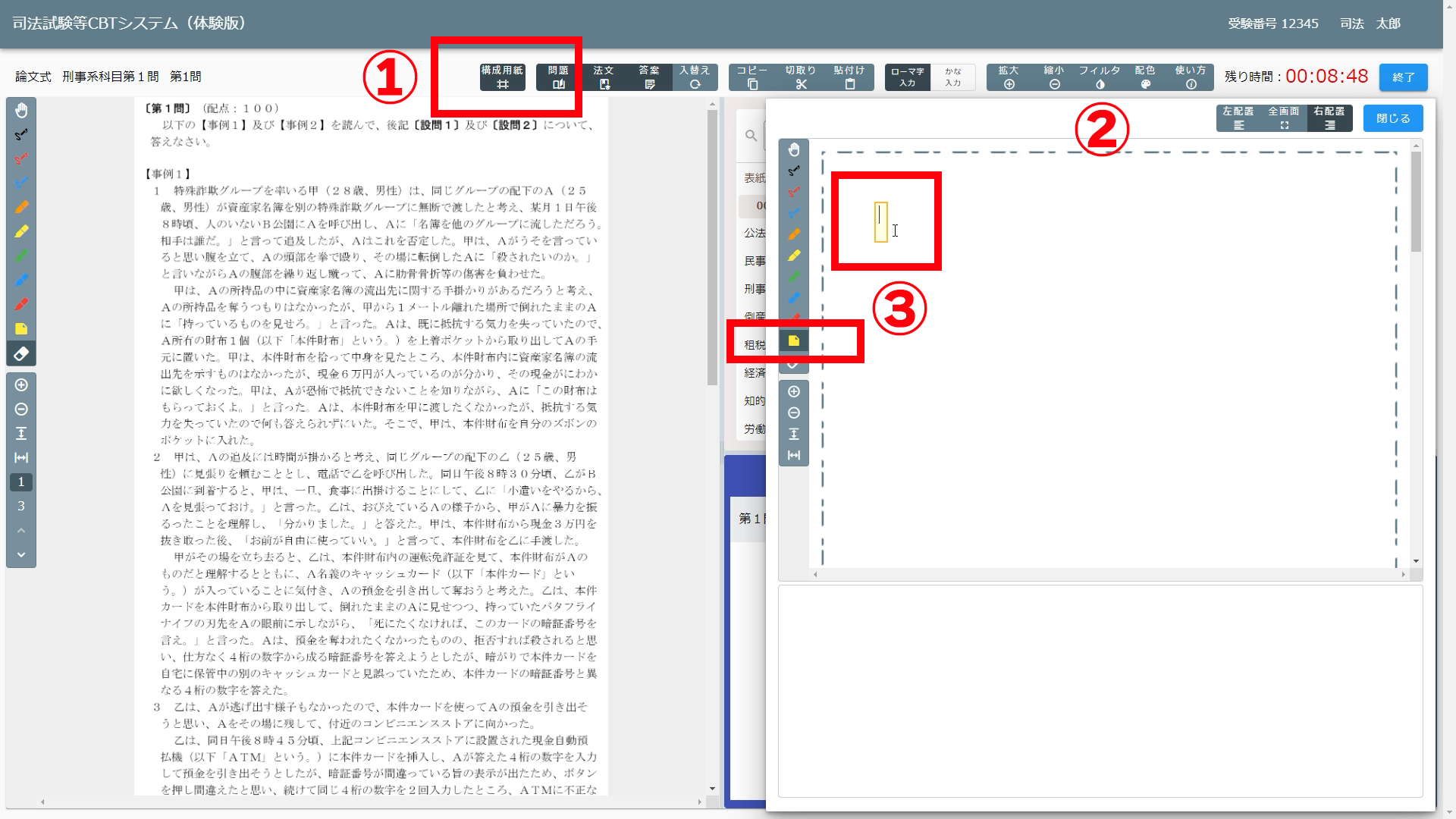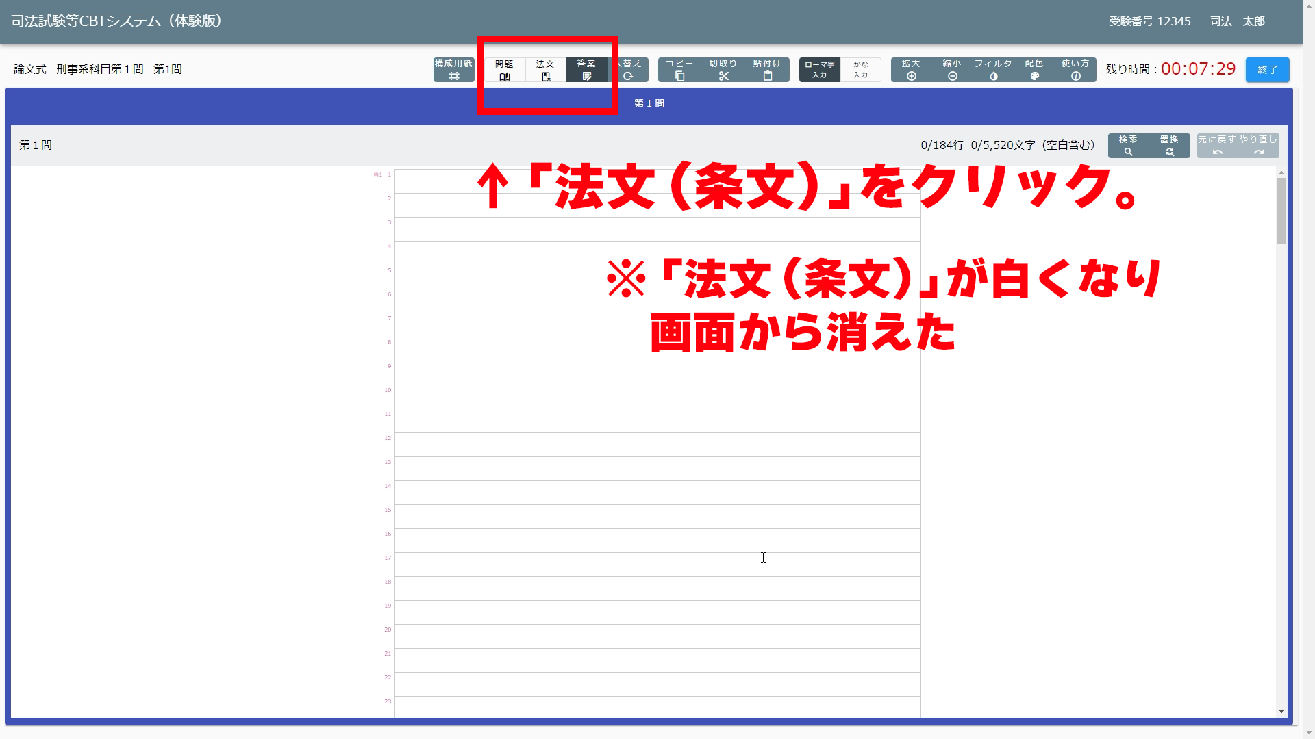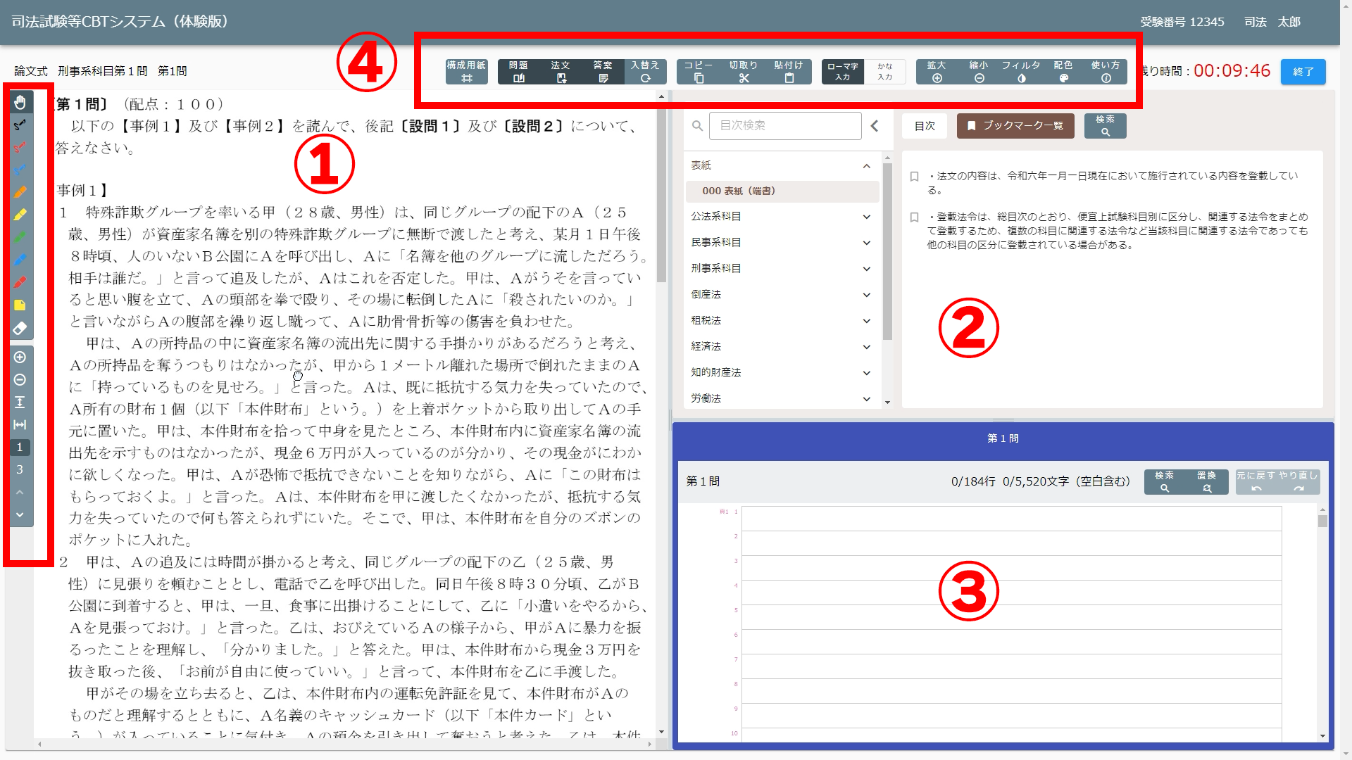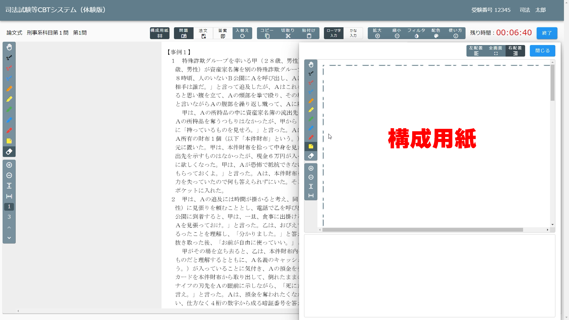 実際に司法試験CBT(体験版)を操作してみて、それをどう攻略していくかが、分岐点となることに間違いはありません。