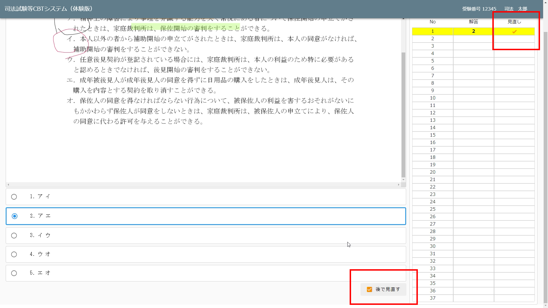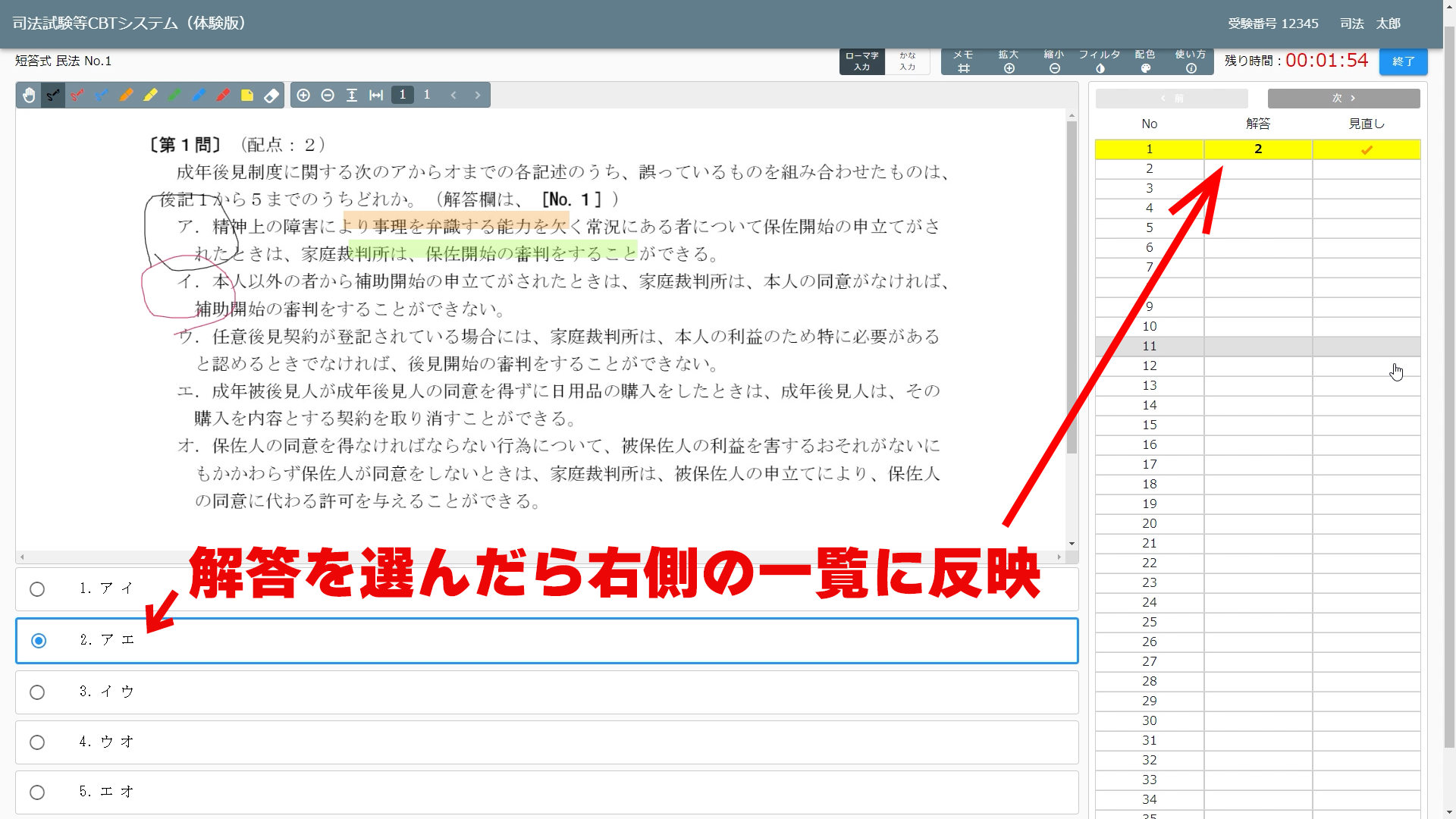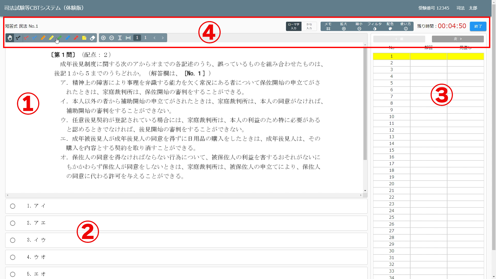 - 司法試験等のCBTシステム(体験版)の主な変更点