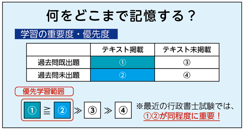 何をどこまで記憶すべきかは、「出題される可能性」で判断します。