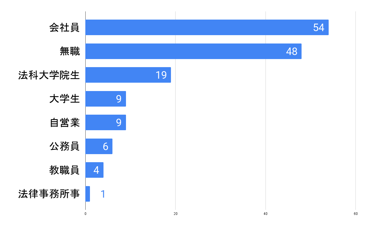 まずは今回予備試験【CBT第1弾企画!】「CBT論文体感模試」にご参会いただき、アンケートにご協力いただいた皆様の、主な概要をお知らせ致します。