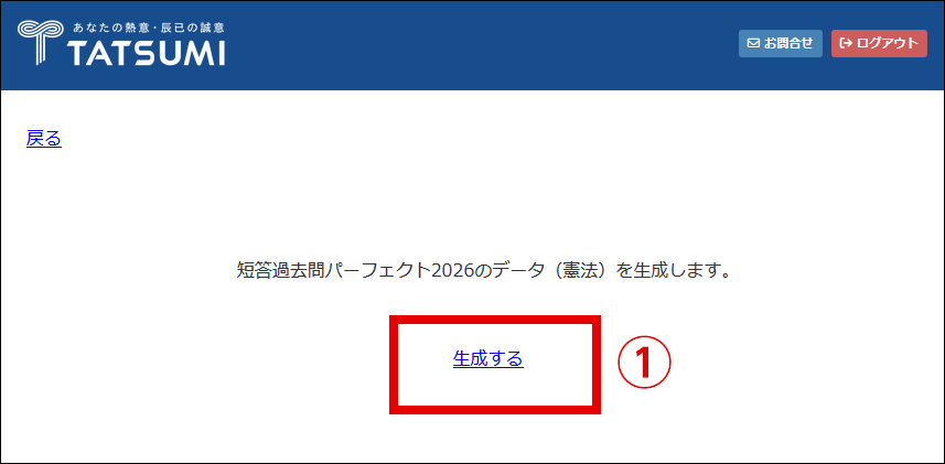 - 短答過去問パーフェクト2026年版データのセットアップ(生成)を行います。