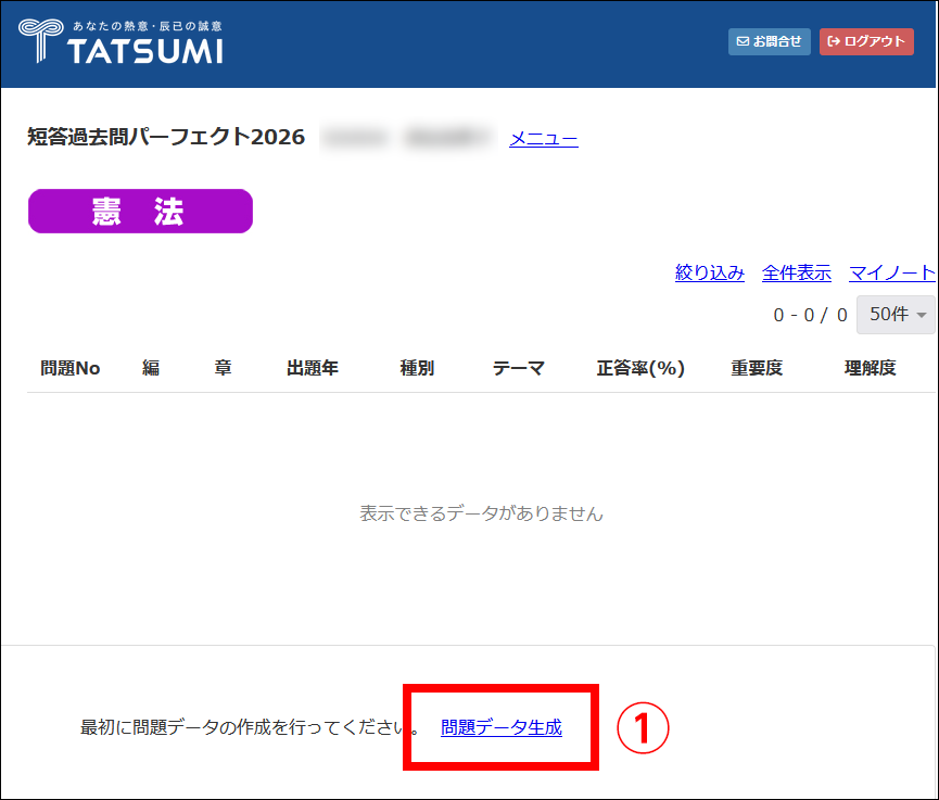 画面左下の「問題データ生成(①)」ボタンをクリックしてください。