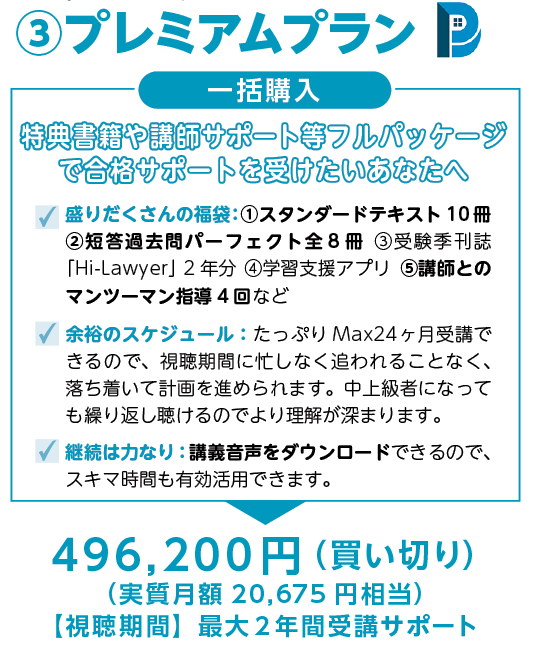 | 4 講義音声もダウンロードできる(基礎集中講義について) | × | × | 〇 |