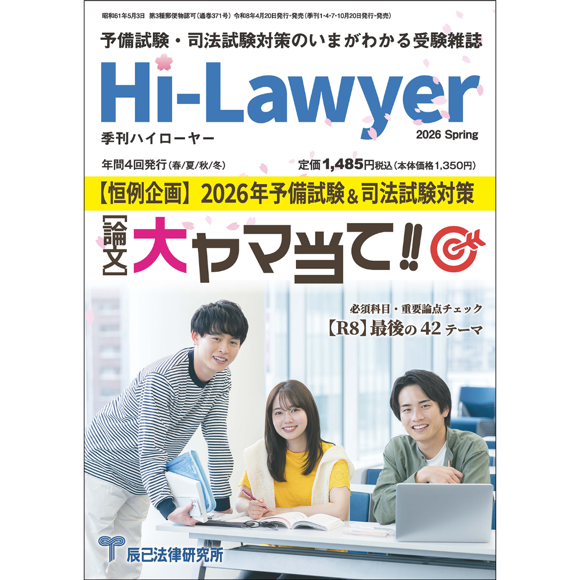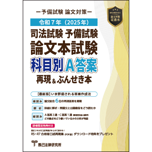 書籍&DVD オンライン購入 書籍 DVD 予備試験 司法試験 法科大学院 司法書士 社労士 季刊誌 ハイローヤー2026年春号_26CBZZ8120 ¥1,485 購入 R7・R6・R5司法試験&予備試験 論文過去問答案セット【特別価格6月末まで&送料無料】_26CBZZ8114 ¥23,290 購入 予備試験・司法試験 論文答案作成 基本の「き」 憲法・民法・刑法【特別価格5月末まで&送料無料】_26CBZZ8117 ¥3,000 購入 令和7年司法試験&予備試験 論文過去問答案セット【特別価格6月末まで&送料無料】_26CBZZ8113 ¥8,400 購入 R7・R6・R5予備試験 論文本試験 科目別A答案再現&ぶんせき本3年分セット【期間限定特別価格&送料無料】_26BBZZ8112 ¥10,700 購入 令和7年(2025年)予備試験 論文本試験 科目別A答案再現&ぶんせき本【期間限定特別価格&送料無料】_26BBZZ8111 ¥3,700 購入 2026肢別本【全7科目8冊セット】直販特別価格 ■送料無料!■_26BBZZ8078 ¥37,000 購入 2026肢別本【憲民刑3科目4冊セット】直販特別価格 ■送料無料!■_26DBZZ8079 ¥19,000 購入 2026肢別本【商訴行4科目4冊セット】直販特別価格 ■送料無料!■_26BBZZ8080 ¥18,900 購入 2026肢別本 憲法_26DBZZ8081 ¥4,800 購入 2026肢別本 行政法_26BBZZ8082 ¥4,800 購入 2026肢別本 民法①_26DBZZ8083 ¥4,800 購入 2026肢別本 民法②_26DBZZ8084 ¥4,900 購入 2026肢別本 商法_26BBZZ8085 ¥4,800 購入 2026肢別本 民事訴訟法_26BBZZ8086 ¥4,800 購入 2026肢別本 刑法_26DBZZ8087 ¥4,800 購入 2026肢別本 刑事訴訟法_26BBZZ8088 ¥4,800 購入 季刊誌 ハイローヤー2026年冬号_26CBZZ8100 ¥1,485 購入 2026短答過去問パーフェクト【商訴行政4冊セット】直販特別価格_26BBZZ8037 ¥19,700 購入 2026短答過去問パーフェクト【憲民刑4冊セット】直販特別価格_26CBZZ8036 ¥19,700 購入 2026短答過去問パーフェクト【全7科目8冊セット】直販特別価格_26BBZZ8035 ¥38,400 購入 2026短答過去問パーフェクト 刑事訴訟法_26BBZZ8045 ¥5,000 購入 2026短答過去問パーフェクト 刑法_26CBZZ8044 ¥5,100 購入 2026短答過去問パーフェクト 民事訴訟法_26BBZZ8043 ¥5,000 購入 2026短答過去問パーフェクト 商法_26BBZZ8042 ¥5,000 購入 2026短答過去問パーフェクト 民法②_26CBZZ8041 ¥5,100 購入 2026短答過去問パーフェクト 民法①_26CBZZ8040 ¥4,800 購入 2026短答過去問パーフェクト 行政法_26BBZZ8039 ¥5,000 購入 2026短答過去問パーフェクト 憲法_26CBZZ8038 ¥5,000 購入 季刊誌 ハイローヤー2025年秋号_26CBZZ8060 ¥1,485 購入 2026司法試験&予備試験 1冊丸ごとCBT 戦略思考ノート+CBTアプリ親切マニュアル_26CBZZ8031 ¥1,485 購入 予備試験短答過去問パーフェクト(法律科目)令和7年単年度版_26BBZZ8005 ¥3,300 購入 令和6年(2024年)予備試験 論文本試験 科目別A答案再現&ぶんせき本【送料無料】_25BBZZ8169 ¥3,960 購入 季刊誌 ハイローヤー2025年春号&夏号2冊セット_25CBZZ8165 ¥2,700 購入 季刊誌 ハイローヤー2025年夏号_25CBZZ8164 ¥1,485 購入 えんしゅう本第3版 刑事訴訟法【送料無料】_25CBZZ8163 ¥3,300 購入 えんしゅう本第3版 刑法【送料無料】_25CBZZ8162 ¥3,300 購入 えんしゅう本第3版 民事訴訟法【送料無料】_25CBZZ8161 ¥3,300 購入 えんしゅう本第3版 商法【送料無料】_25CBZZ8160 ¥3,300 購入 えんしゅう本第3版 民法【送料無料】_25CBZZ8159 ¥3,300 購入 えんしゅう本第3版 行政法【送料無料】_25CBZZ8158 ¥3,300 購入 えんしゅう本第3版 憲法【送料無料】_25CBZZ8157 ¥3,300 購入 えんしゅう本 第3版 刑事系2冊セット【版元特別価格+送料無料】_25CBZZ8156 ¥6,500 購入 えんしゅう本 第3版 民事系3冊セット【版元特別価格+送料無料】_25CBZZ8155 ¥9,700 購入 えんしゅう本 第3版 公法系2冊セット【版元特別価格+送料無料】_25CBZZ8154 ¥6,500 購入 えんしゅう本 第3版 商訴行政4冊セット【版元特別価格+送料無料】_25CBZZ8153 ¥13,000 購入 えんしゅう本 第3版 憲民刑3冊セット【版元特別価格+送料無料】_25CBZZ8152 ¥9,700 購入 えんしゅう本 第3版 全7冊セット【版元特別価格+送料無料】_25CBZZ8151 ¥21,500 購入 法律実務基礎科目ハンドブック1&2〔第6版〕2冊セット【版元特別価格&送料無料】_25BBZZ8129 ¥7,900 購入 法律実務基礎科目ハンドブック2 刑事実務基礎〔第6版〕【送料無料】_25BBZZ8128 ¥4,180 購入 法律実務基礎科目ハンドブック1 民事実務基礎〔第6版〕【送料無料】_25BBZZ8127 ¥4,180 購入 季刊誌 ハイローヤー2025年春号_25CBZZ8134 ¥1,485 購入 令和6年(2024年)予備試験 論文本試験 科目別A答案再現&ぶんせき本【期間限定特別価格&送料無料】_25BBZZ8123 ¥3,600 購入 1冊だけで環境法(改訂版)_25CBZZ8122 ¥5,100 購入 季刊誌 ハイローヤー2025年冬号_25CBZZ8106 ¥1,485 購入 季刊誌 ハイローヤー2024年秋号_25CBZZ8052 ¥1,485 購入 予備試験短答過去問パーフェクト(法律科目)令和6年単年度版_25BBZZ8022 ¥3,190 購入 1冊だけで国際私法(第4版)_24CBZZ8096 ¥5,100 購入 1冊だけで知的財産法(第3版)_24CBZZ8093 ¥5,100 購入 1冊だけで経済法(第3版)_24CBZZ8090 ¥5,100 購入 1冊だけで労働法(第4版)_24CBZZ8089 ¥5,100 購入 予備試験リアルA答案 直近3年分 R5・R4・R3 民法・商法・民訴法_24BBZZ8099 ¥3,630 購入 予備試験リアルA答案 直近3年分 R5・R4・R3 憲法・行政法_24BBZZ8098 ¥3,300 購入 季刊誌 ハイローヤー2024年夏号_24CBZZ8103 ¥1,485 購入 1冊だけで倒産法(第3版)_24CBZZ8102 ¥5,100 購入 読み解く